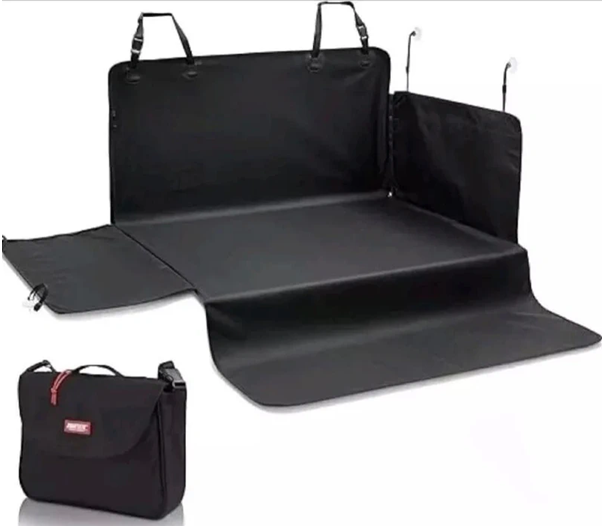 Tapis de coffre indéchirable et imperméable avec protection latérale et seuil de chargement Taille universelle pour presque toutes les voitures, des petites voitures aux SUV Maintien solide grâce aux bandes Velcro et aux ventouses ; pour le nettoyage, il suffit d'essuyer le tapis de protection de coffre Sac à bandoulière en bonus avec fermeture à sangle pour kit de premiers secours, accessoires pour chien, etc. Idéal comme tapis pour chien pour les propriétaires d'animaux ou comme couverture de protection de voiture pour un usage quotidien 170x95cm.
